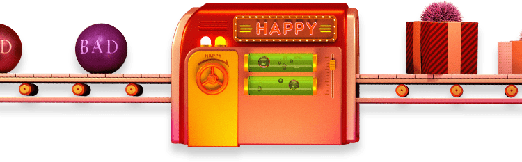 ハッピーな思い出に変えてくれる工場のような場所。そんな工場に見立ててビジュアルを作りました。この様々な仕掛けが詰まった楽しいビジュアルを、3Dで表現しています。
